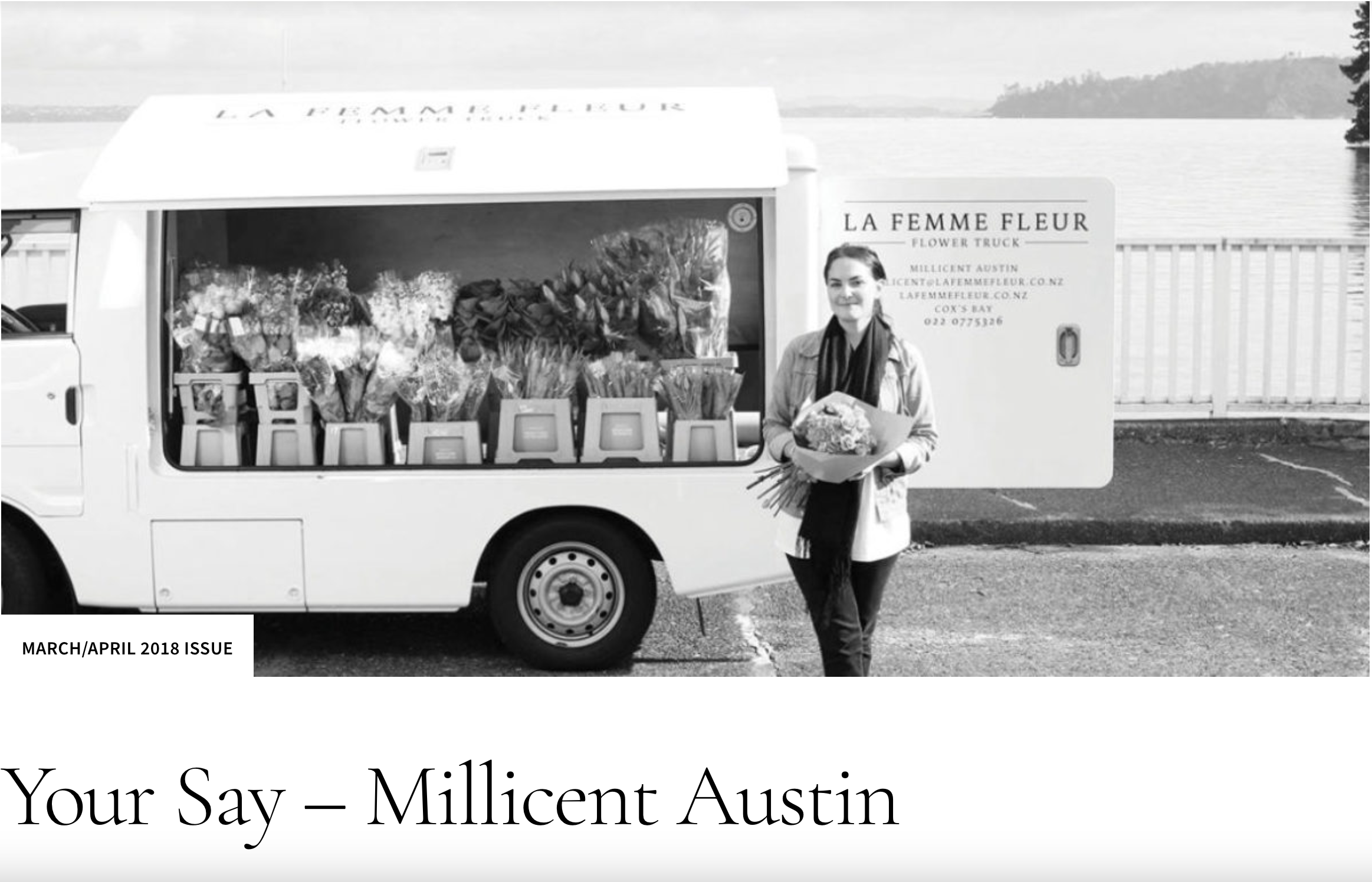 When I returned to New Zealand, I wanted Aucklanders to do the same. I qualified as a florist and in 2014 I opened my flower truck on the waterfront of Cox’s Bay. In 2021 I made the move to Bloodworth Park in Remuera.